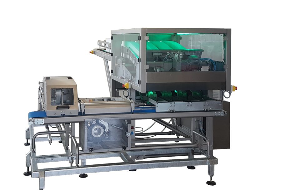 The tray stacks advance thanks to motorized lower strips that automatically bring them to the unstacking station, without pressure and without crushing.